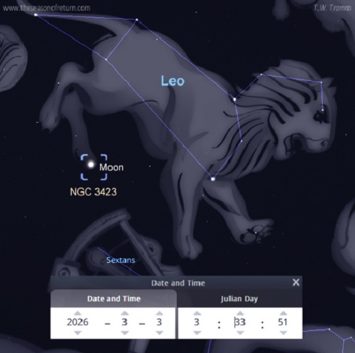 Another 3423 coincidence is that Exodus “34:23” is the verse in which God commands attendance of the harvest festivals: “Three times in the year [Passover, Pentecost, and Tabernacles] all your men shall appear before the Lord” (Ex. 34:23). Thus, the lunar occultation of galaxy 3423 in early March could be a sign pointing to the subsequent harvest season.
